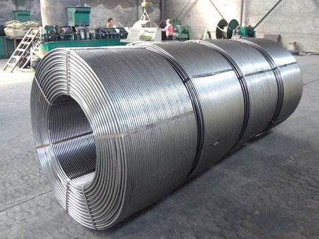 由硅鈣合金加工成粉由帶鋼包裹后,經(jīng)包芯線機加工而成;
